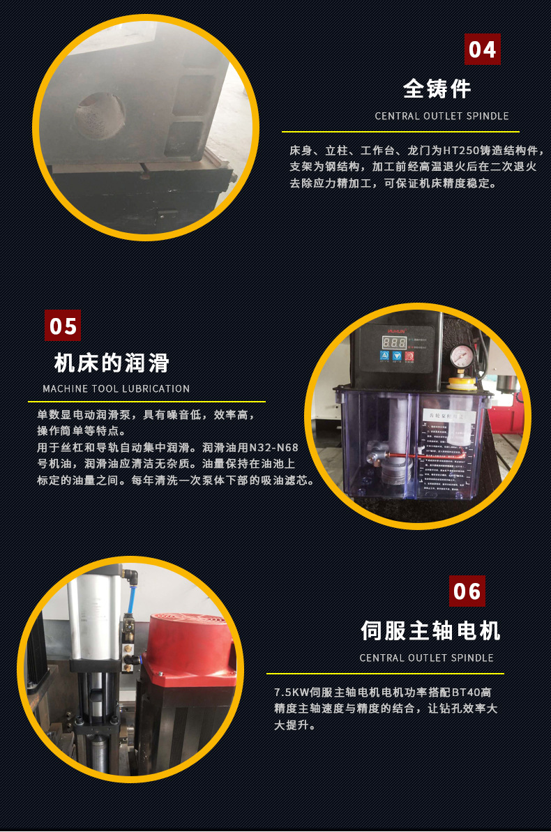 全封閉數控鉆床主要用于平板、法蘭、盤類、環件等厚度在有效范圍內工件的高效鉆孔加工??稍趩钨|材料零件及復合材料上實現鉆通孔、盲孔。機床加工過程數字控制,操作十分方便。能實現自動化、高精度、多品種、大批量生產。為滿足不同用戶的加工需求,公司開發了多種定型產品,除常規機型外,還可根據用戶實際需求設計定制。